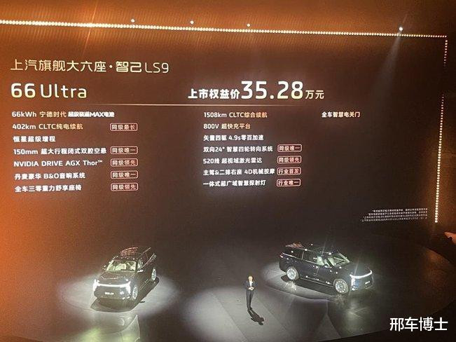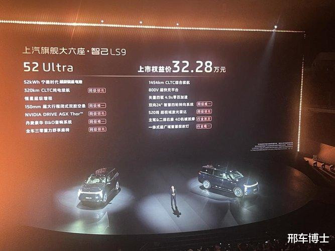 新车震撼发布两个超级增程版本:智己LS9 52 Ultra版上市权益价32.28万元,入门即巅峰,以30万出头的价格,享受时代最旗舰的满配大六座;智己LS9 66 Ultra版,更搭载66度宁德时代超级骁遥MAX电池,将续航和性能推向极致,上市权益价35.28万元。
