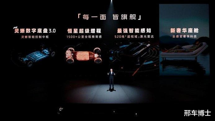 智己LS9全系皆Ultra,将恒星超级增程、灵蜥数字底盘3.0、双向24°超大角度智慧四轮转向、520线超视域激光雷达+英伟达Thor芯片、主驾座椅4D机械按摩等150余项行业顶尖配置全系标配。